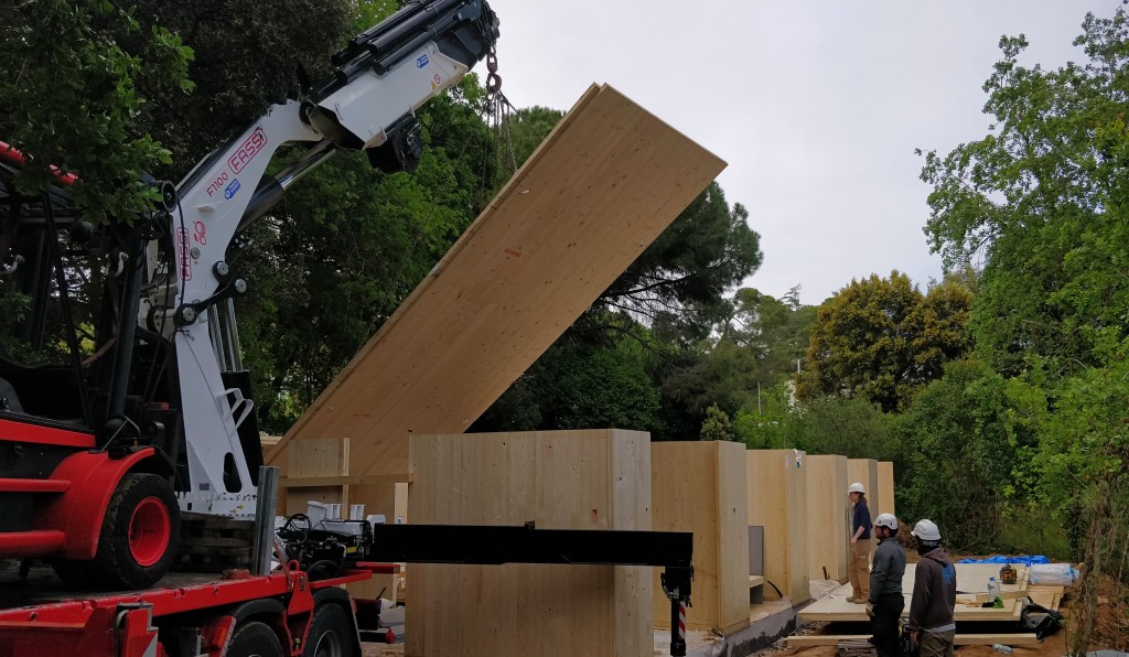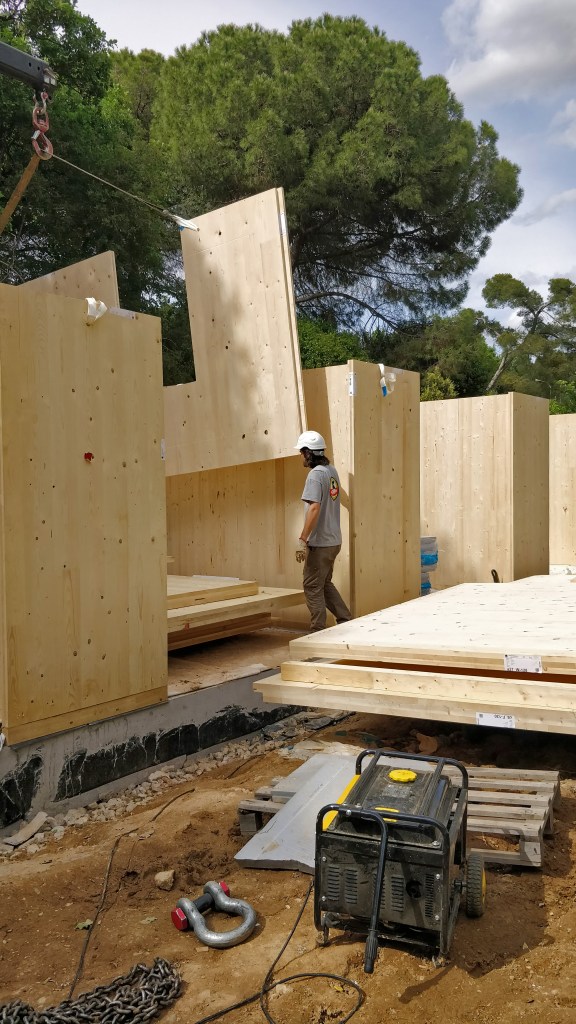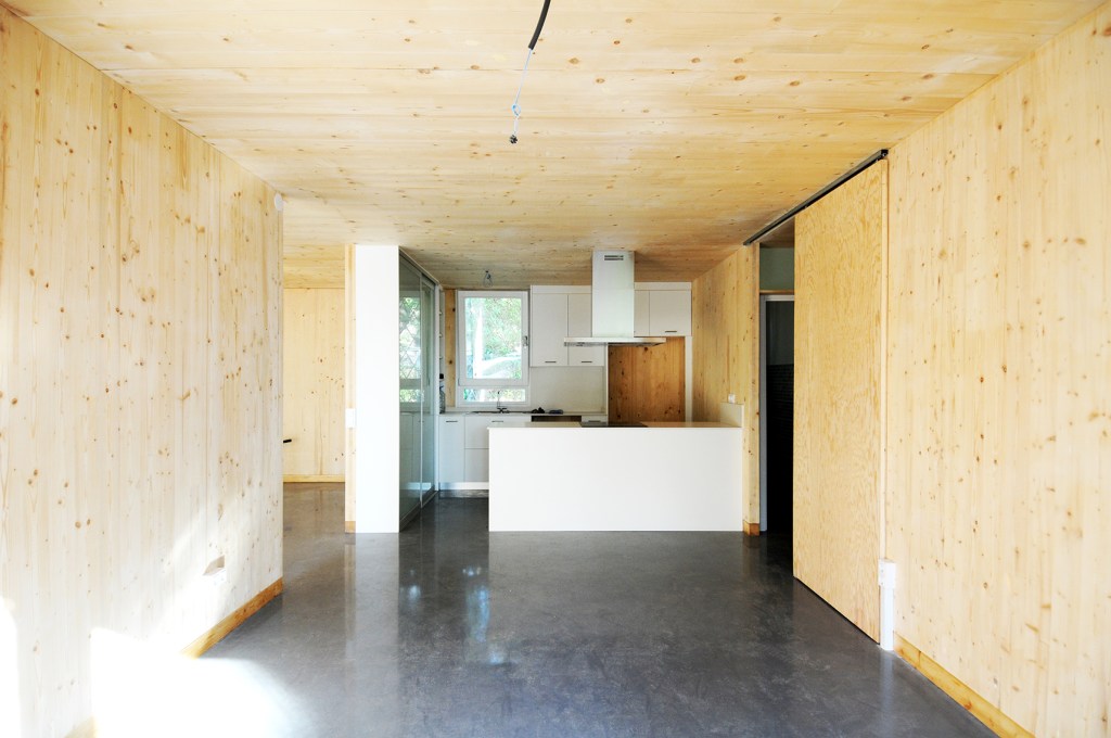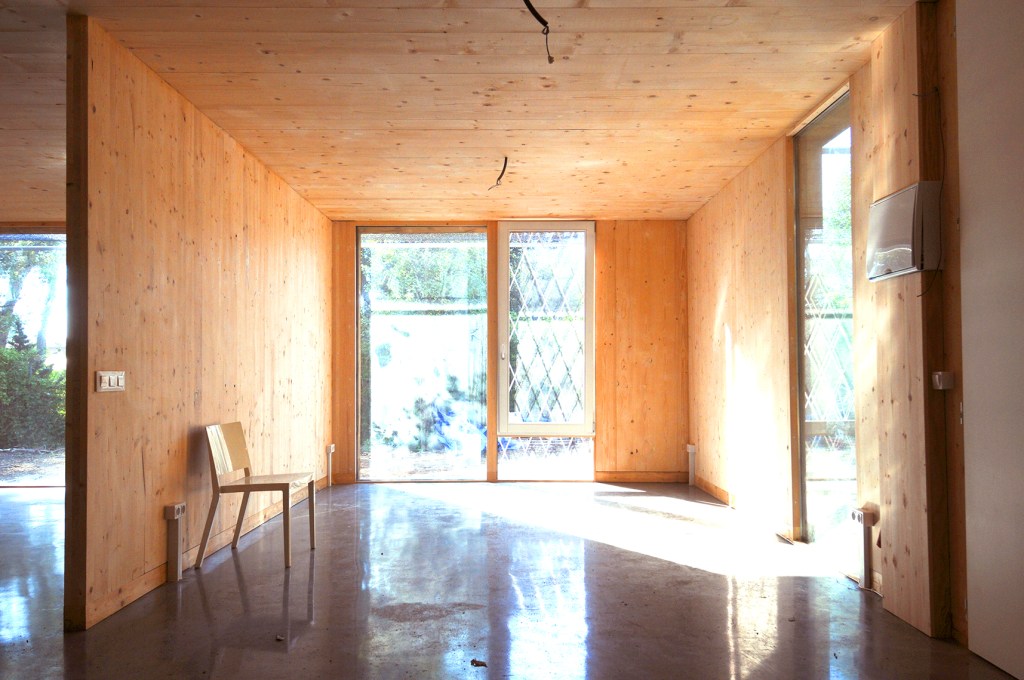 La Casa Bellaterra neix de la necessitat dels meus pares de tenir una casa nova amb un pressupost extremadament baix, molt ràpid, i uns desitjos elevats, i també del meu entusiasme. Calia fer un projecte senzill, molt ràpid, molt barat i que agradés als clients. Per fer-ho es va simplificar extremadament i es van buscar solucions no 2×1, sinó, 3×1 o 4×1. El paviment, per exemple, és paviment de formigó polit, que alhora és la solera, que és el terra radiant que és la fonamentació. O Les parets, que són de fusta de CLT vista amb qualitat “no vista” i que es va deixar tal qual un cop muntat directament des del camió. Es va suprimir totes les fusteries dels vidres fixes per col·locar els vidres directament sobre els tancaments (sense marc), fet que va estalviar molts diners i permetre guanyar captació solar… La Casa Bellaterra és un exemple de simplicitat tècnica, sense renunciar a cap demanda tècnica ni de confort. És una casa passiva que ha permès estalviar als usuaris un 98% de l’energia en climatització respecte la seva casa anterior, a un preu de només 670€/m2 i construïda en només 4 mesos.